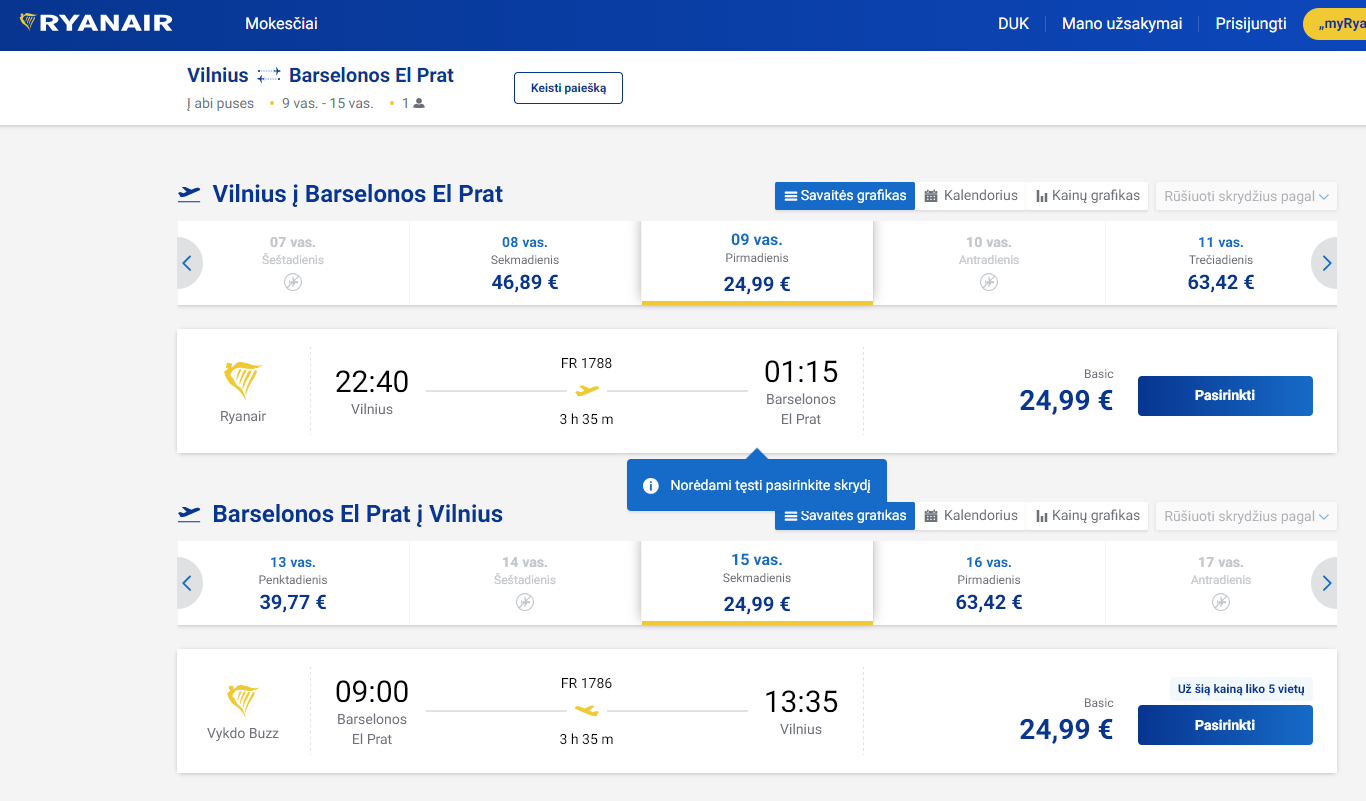 Šiuo metu esančią pigiausią skrydžio Vilnius – Barselona kainą, galite pasitikrinti čia: Savarankiška kelionė į Barseloną