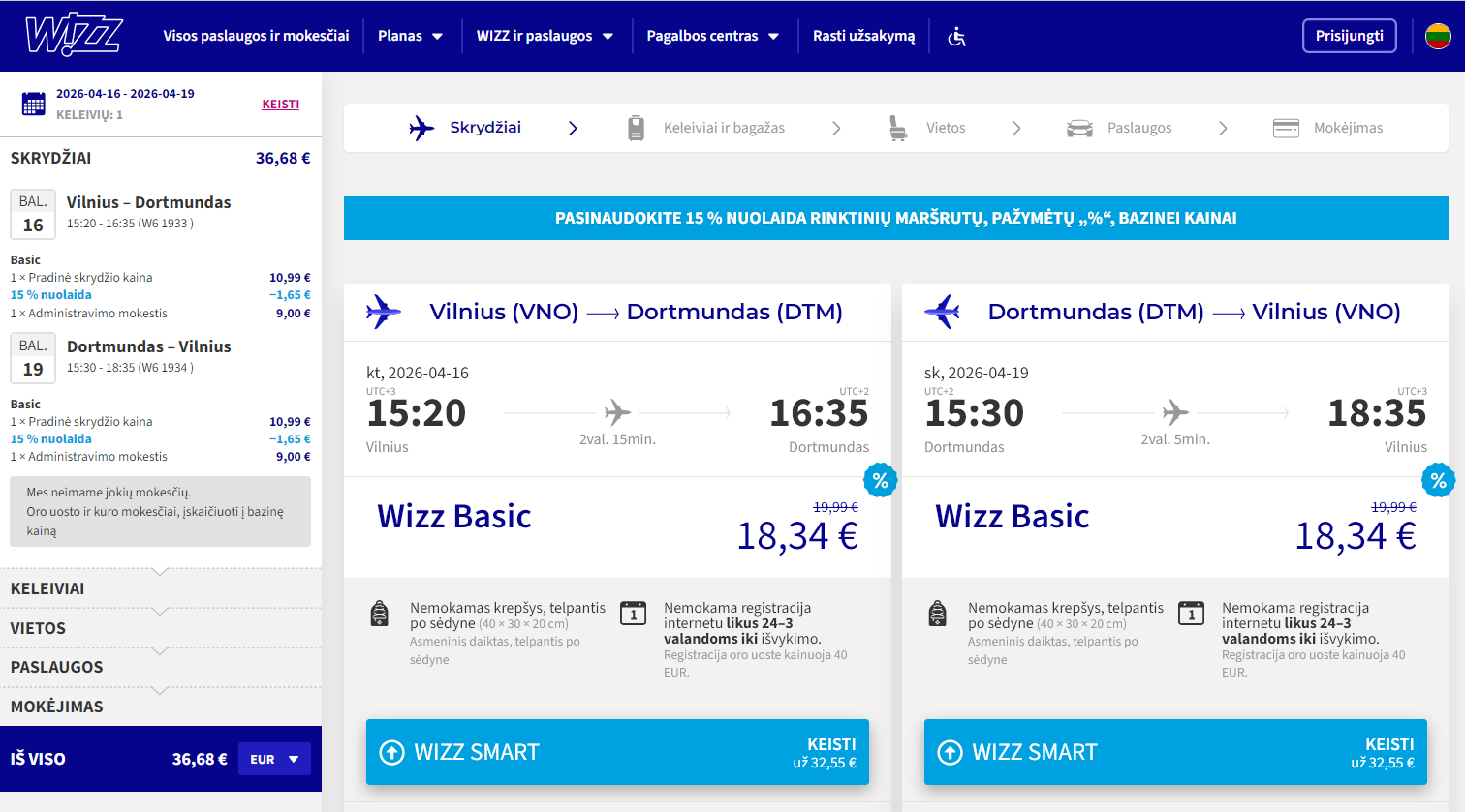 Info: Vilnius Dortmundas 2026 m. balandžio mėn. tik €36,68 (3n.)
