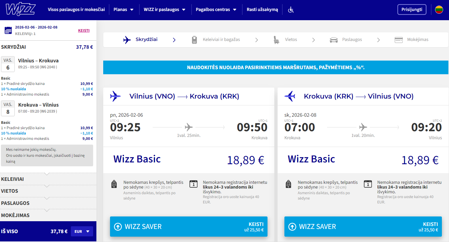Info: Vilnius Krokuva 2026 m. vasario mėn. tik €37,78 (2n.)