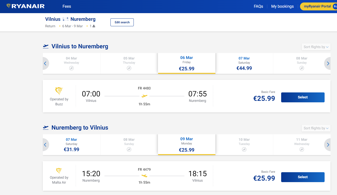 Šiuo metu esančią pigiausią skrydžio Vilnius – Niurnbergas kainą, galite pasitikrinti čia: Vilnius Niurnbergas ryanair skrydžiai