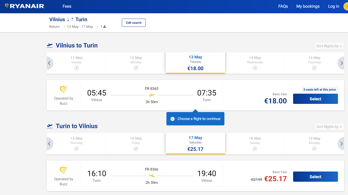 Šiuo metu esančią pigiausią skrydžio Vilnius – Turinas kainą, galite pasitikrinti čia: Vilnius Turinas ryanair skrydžiai