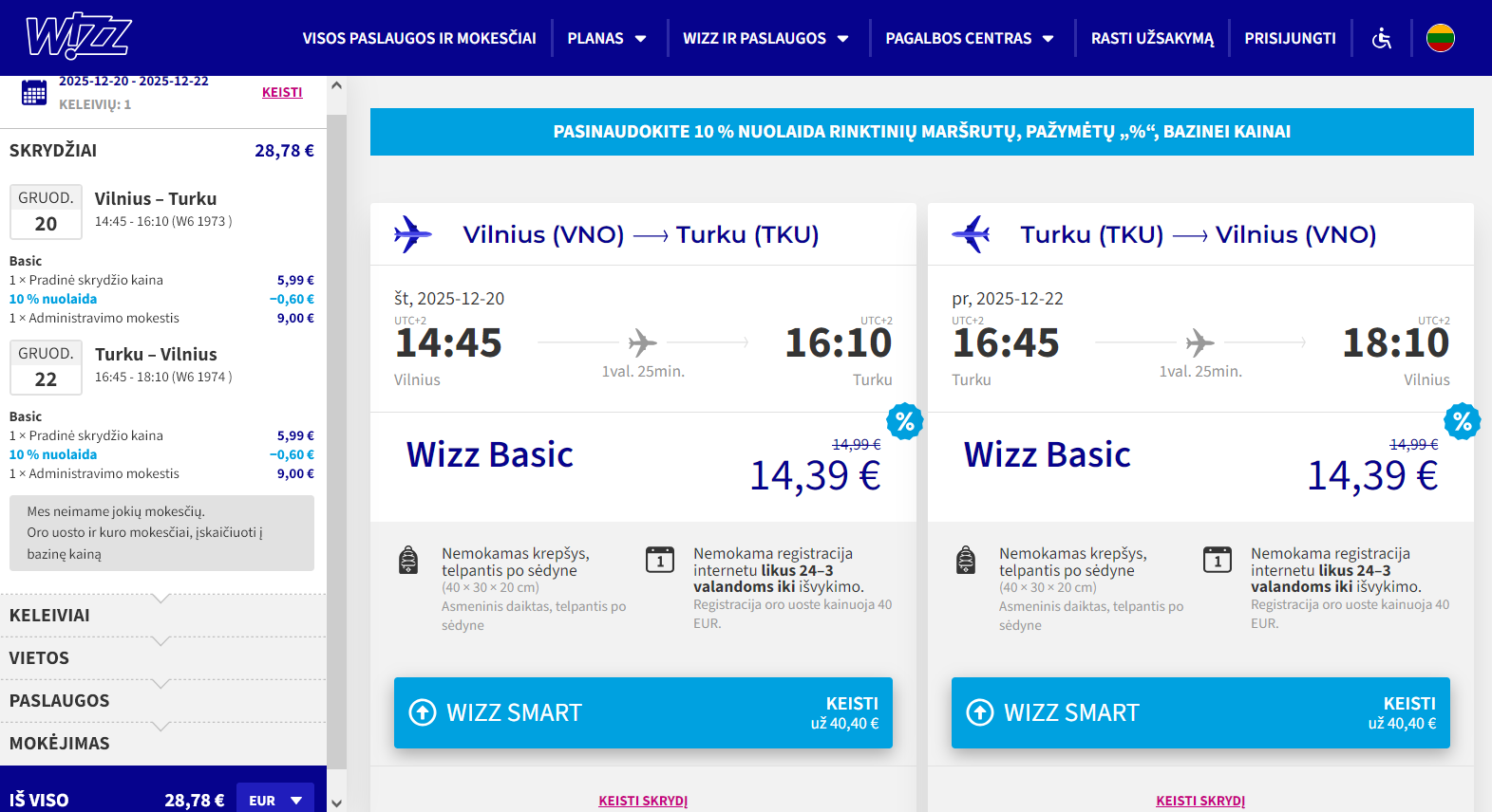 Info: Vilnius Turku 2025 m. gruodžio mėn. tik €28,78 (2n.)