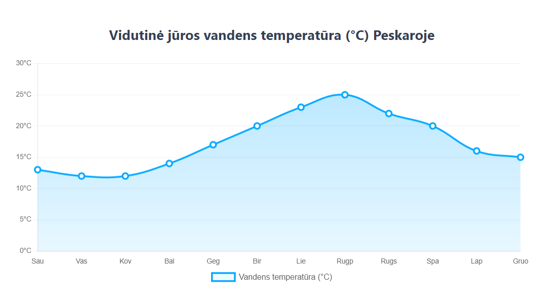- Vasara (birลพelisโrugpjลซtis): Karลกta ir saulฤta, temperatลซra daลพnai virลกija 30ยฐC. Tai idealus metas paplลซdimio poilsiui.